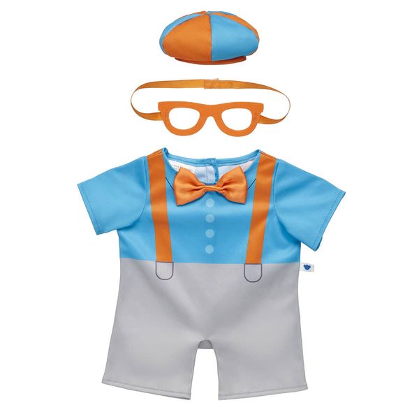 Inspire curiosity with this Blippi costume for furry friends! Kids will have fun learning and playing alongside their own bear dressed as Blippi. The set includes Blippi’s blue and orange beanie cap, orange glasses, and a blue-grey costume featuring his signature orange bow tie and suspenders. It’s a fun new way to experience the wonderful world of Blippi!
