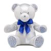 “Celebrate 25 years of Build-A-Bear with this stunning collectible dazzling with Swarovski® crystals! This collectible bear takes the silver anniversary celebration to the next level with its ultra-suede silver fur embellished with sparkling Swarovski crystals. This show-stopping bear also has a heart crystal stitched on its chest and comes in a beautiful gift bag with a crystals from Swarovski authenticity seal. With only 250 bears made, this luxe collector’s item makes the most exclusive gift and keepsake for Build-A-Bear fans and collectors.