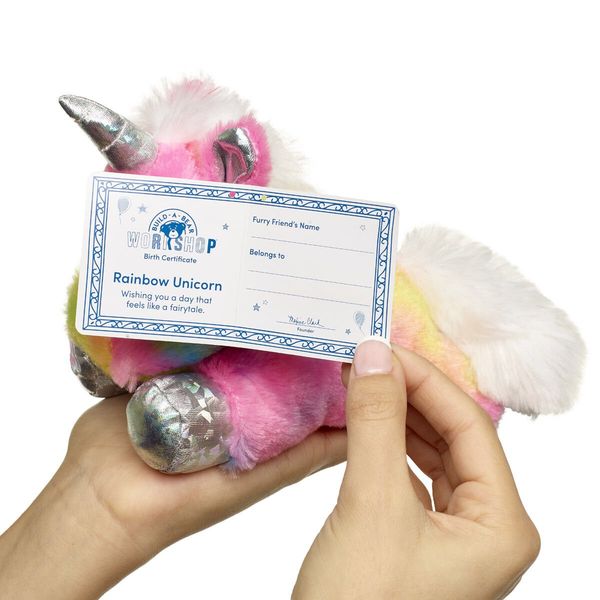 Small in size, big in fun! Build-A-Bear Mini Beans are mini versions of our cutest furry friends. Every Mini Bean plush is stuffed with tiny beans and comes with a special wish on its Birth Certificate. Collect them all and bring home this adorable mini Rainbow Unicorn plush today!