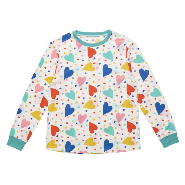 Add a little heart to your bedtime rituals! This multi-colored pajama top for adults features an adorable print pattern of hearts to make the cutest bedtime look.