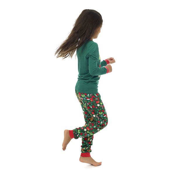 Get cozy for the holidays! This green and red long sleeve top for toddlers will have them drifting off to the most festive of dreams. It features a beary merry print of festive holiday icons on the front. Build-A-Bear Pajama Shop™ styles are available in adult, youth and toddler sizes, so the whole family can have fun matching in their PJs!