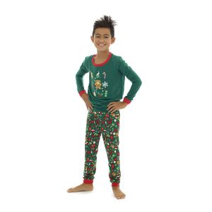 Get cozy for the holidays! This green and red long sleeve top for toddlers will have them drifting off to the most festive of dreams. It features a beary merry print of festive holiday icons on the front. Build-A-Bear Pajama Shop™ styles are available in adult, youth and toddler sizes, so the whole family can have fun matching in their PJs!
