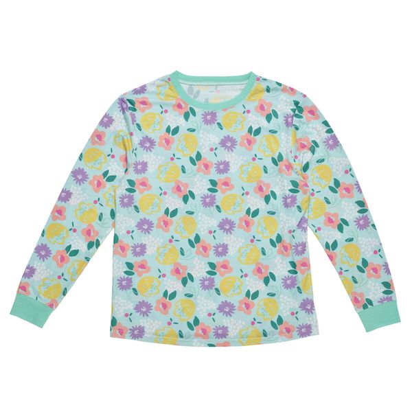 Flower power! Let the good times bloom this spring when snuggled in this cute and cozy PJ top. It features an all-over print of pastel florals to brighten any bedtime routine. Made from 95% polyester and 5% spandex materials. Adult sizes: S, M, L, XL, 2XL.