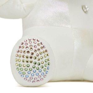This stunning Build-A-Bear Collectible Featuring Swarovski® crystals sparkles with every color of the rainbow! This collectible teddy bear has ultra-suede fur embellished with rainbow Swarovski® crystals on its face, ears and paw pads. This colorful bear also has a heart crystal stitched on its chest and comes in a beautiful gift bag with an authentic crystals from Swarovski® seal. This one-of-a-kind collector’s item makes an unforgettable gift that’s guaranteed to brighten their day.