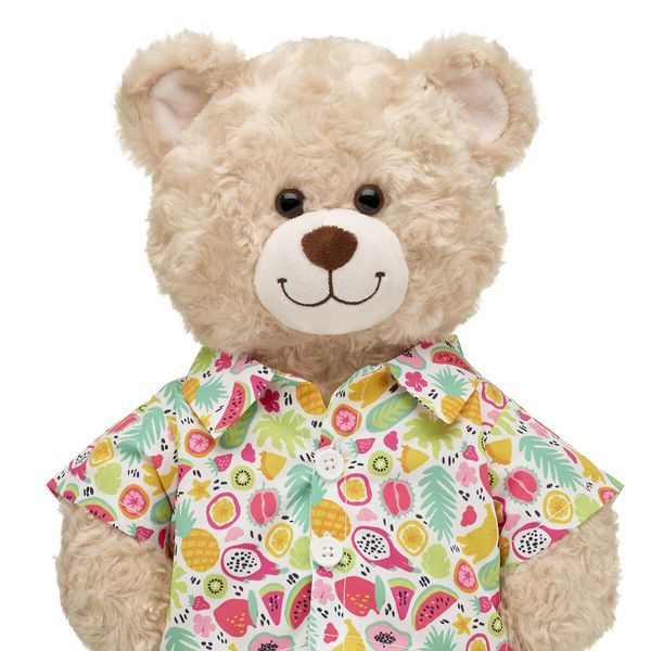 Find the freshest fashions at the Build-A-Bear Fruit Stand! This limited edition button-up shirt from the Build-A-Bear Fruit Stand collection has a colorful print pattern of yummy fruits!