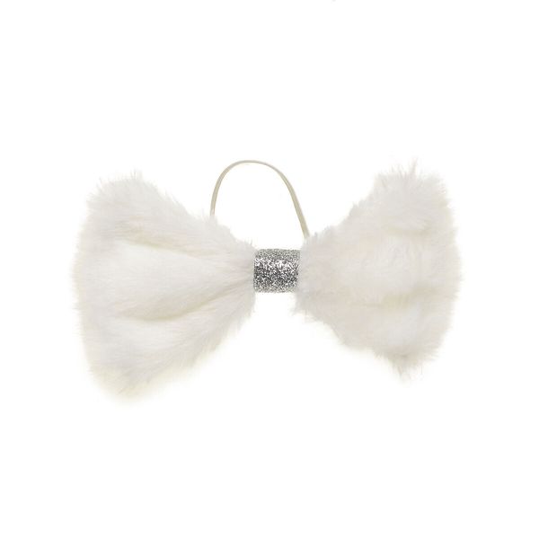 This fuzzy white bow makes a fashionable hair accessory for your furry friend.