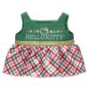 This cute dress has a candy cane striped skirt with a festive gingerbread bear print on the top.