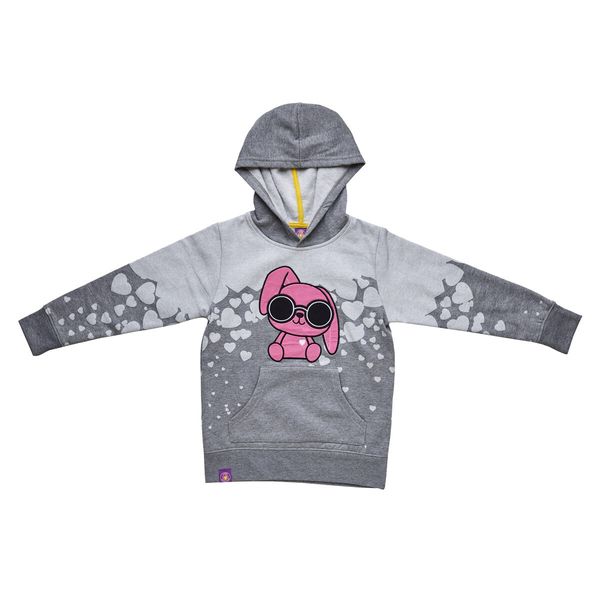 PAWsitivity is at the heart of every Kabu adventure, and now you can proudly display your love for all things Kabu with this cute top! This grey long sleeve top for kids also has Kabu friends printed on the sleeve for some extra fun.Who doesn’t love Pawlette?! This adorable lil’ Kabu bunny looks cool as can be rockin’ her shades on this soft grey hoodie. Plus, the white hearts at the top make this look even more PAWsome!