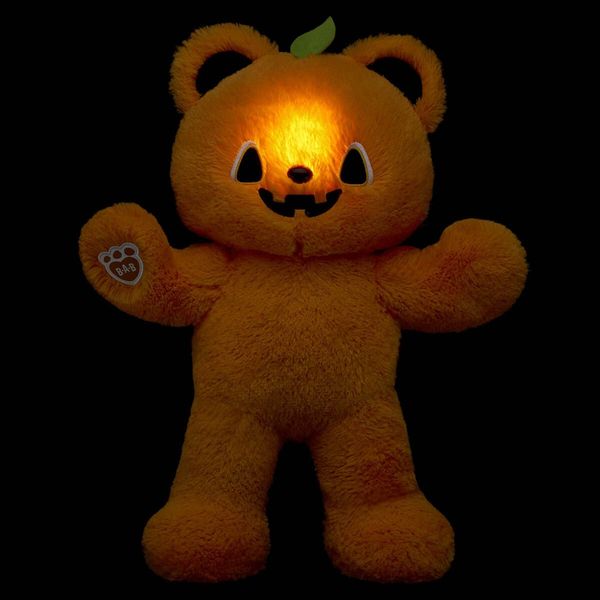 Light up the night this Halloween with Pumpkin Glow Bear! This glowing gourd has bright orange fur and a special glow-in-the-dark feature on its face. Turn off the lights to watch this pumpkin teddy bear light up at the press of its paw! Add more spooky stuff you love (like outfits, accessories, sounds and scents) to get your Pumpkin Glow Bear ready for trick-or-treating fun.