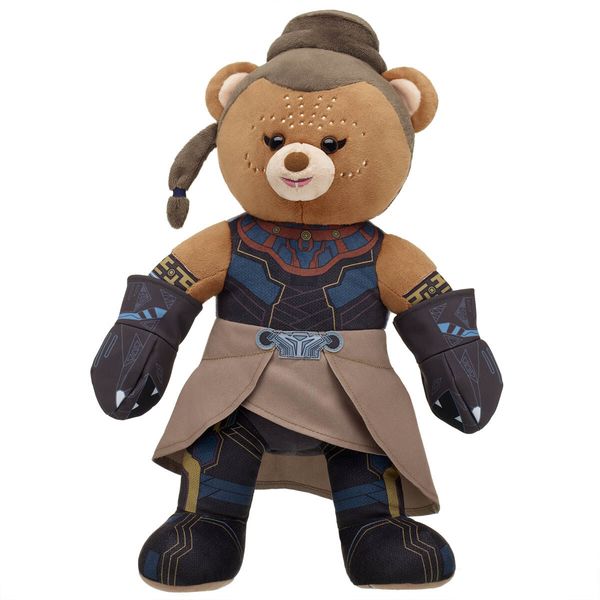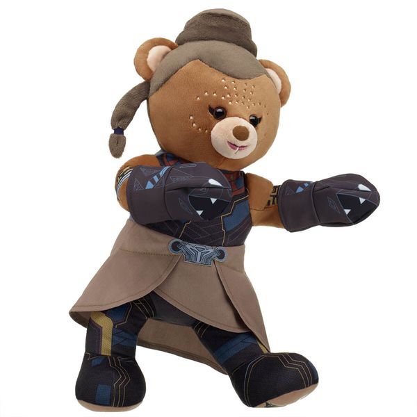 The Princess of Wakanda makes her Build-A-Bear debut! Sister of T’Challa and heiress to the throne of Wakanda, the brilliant and inventive Shuri is an invaluable asset to Black Panther. The first-ever Shuri Bear features a built-in body suit and a Shuri graphic on the paw pad. Shuri’s Vibranium Gauntlets are also included so your bear can fire powerful blasts from its paws. Add this action-packed Shuri Black Panther toy to your collection today!