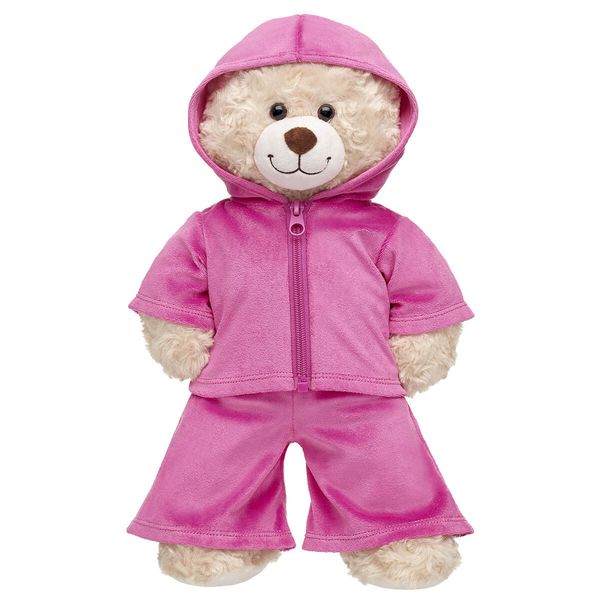 Your furry friend can make a juicy fashion statement when sporting this pink velour tracksuit!
