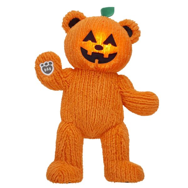 Light up the night with Pumpkin Glow Bear! This glowing gourd gives the cutest Halloween hugs thanks to its friendly face and super soft, textured orange fur. Pumpkin Glow Bear has a special light-up feature in its head, so you can have your very own glow-in-the-dark bear-o’-lantern on display this Halloween. Have fun personalizing your Pumpkin Glow Bear with its own outfits, sounds and scents to make the ultimate Halloween treat!