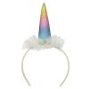 This two-piece stuffed animal outfit includes a purple shirt with rainbows on it and a colorful polka dot skirt.