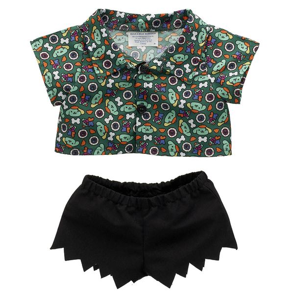 Dress your Pompompurin™ plush for spooky season with this wickedly cute shirt and short set. The green shirt has an all-over print pattern of Pompompurin™ and the black cut-off zombie shorts complete the look!