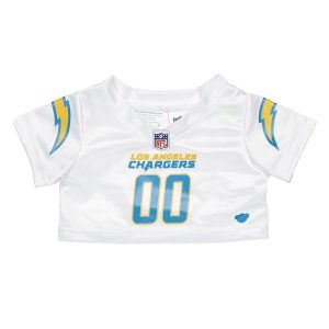 Go Chargers! This teddy bear gift set makes a touchdown of a gift for football fans. It features Timeless Teddy ready for game day in its officially licensed Los Angeles Chargers jersey, fan hat, denim jeans and black shoes. This football bear also includes a plush BAB football to score big with the Chargers fan in your life!