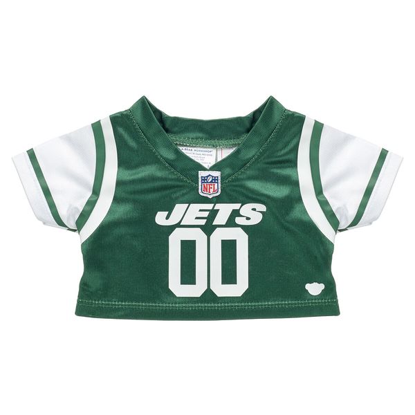 Go Jets! This teddy bear gift set makes a touchdown of a gift for football fans. It features Timeless Teddy ready for game day in its officially licensed New York Jets jersey, fan hat, denim jeans and black shoes. This football bear also includes a plush BAB football to score big with the Jets fan in your life!