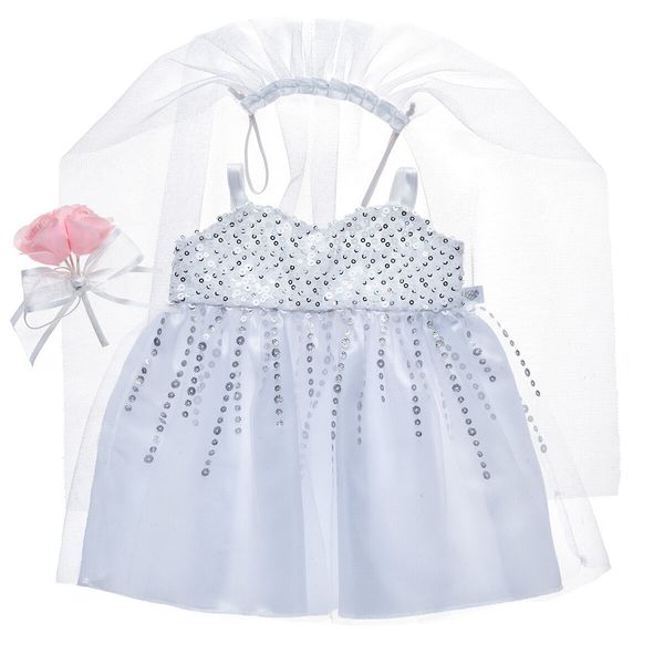 Here comes the bride! Your furry friend will make a beautiful bride in this gorgeous wedding dress set. A stuffed animal dressed in this wedding set makes a perfectly unique wedding gift for any happy couple!
