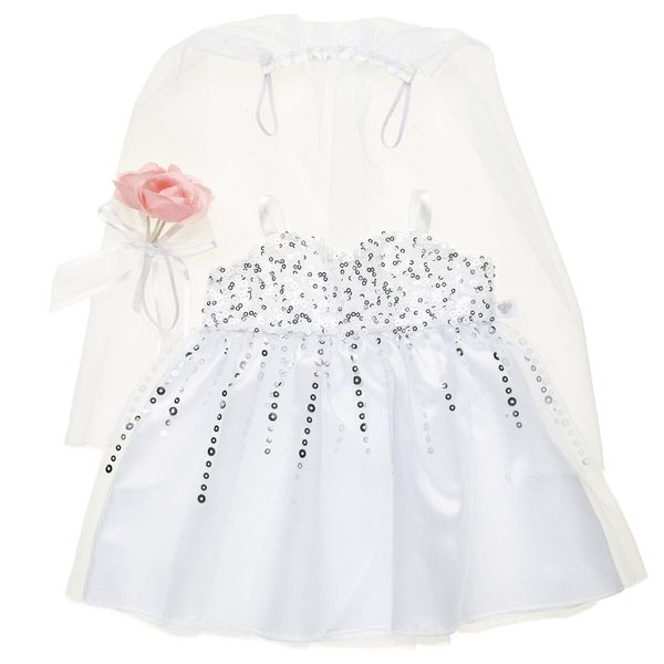 Here comes the bride! Your furry friend will make a beautiful bride in this gorgeous wedding dress set. A stuffed animal dressed in this wedding set makes a perfectly unique wedding gift for any happy couple!